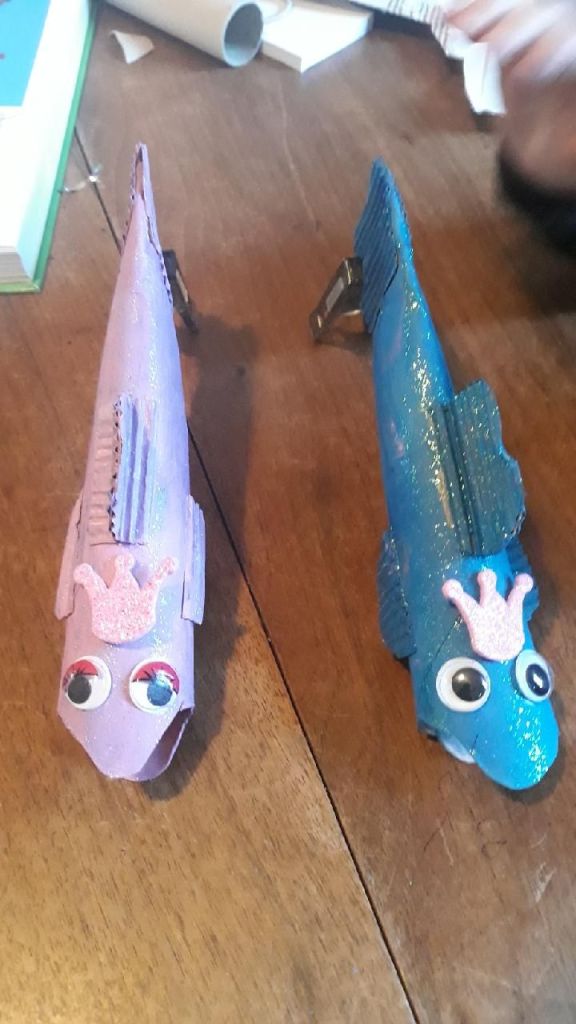 Le 1er avril approche, Ella, 4 ans et demi, a réalisé avec l’aide de sa maman ces adorables poissons. Comment ? avec des rouleaux de sopalin et du carton. Tout simple, non ?